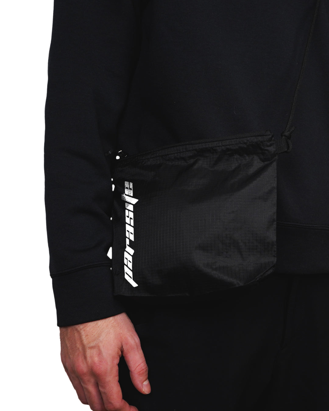 Made from nylon, this waterproof bag features a zipper and inside pocket. It features a "PARASITE" print.