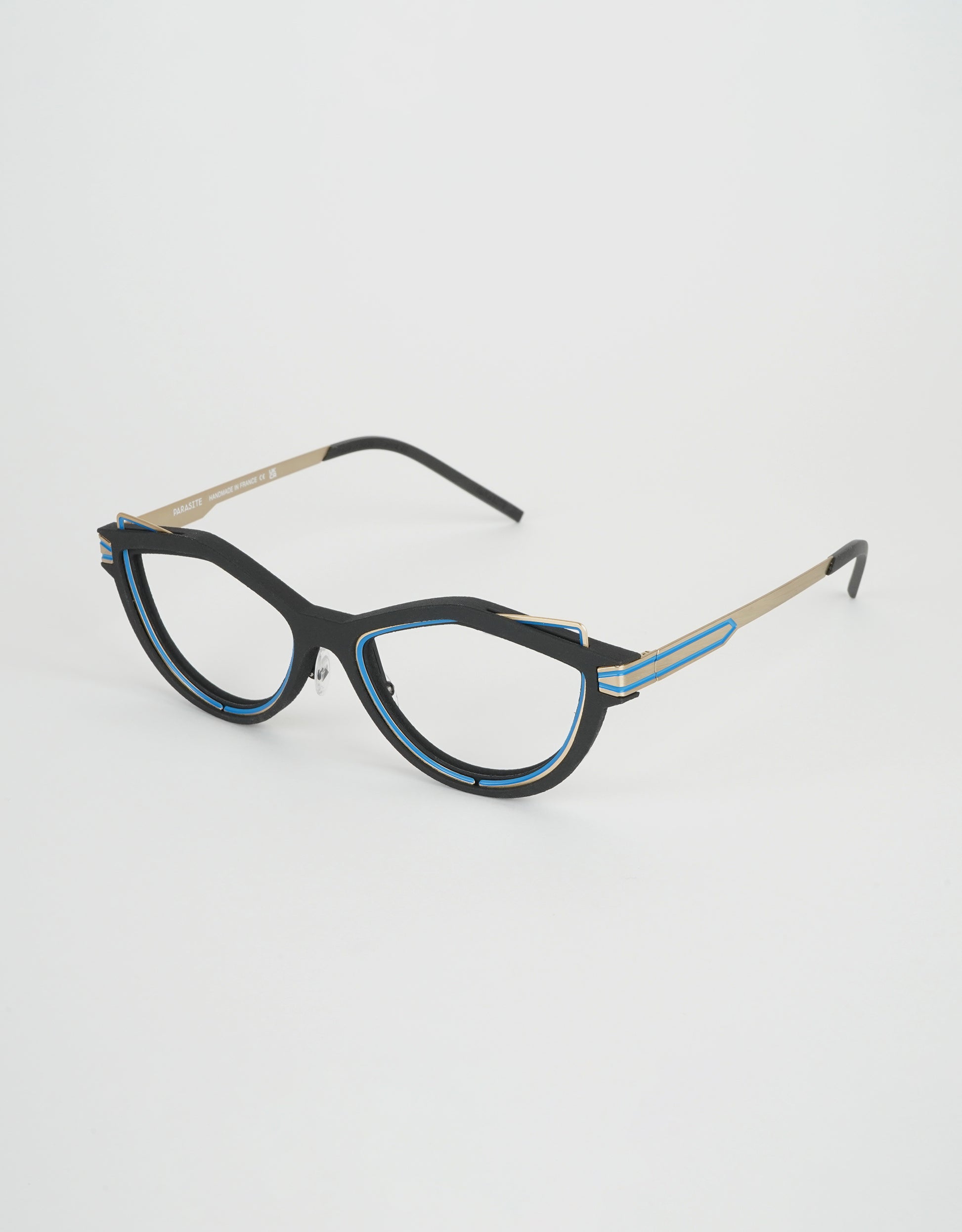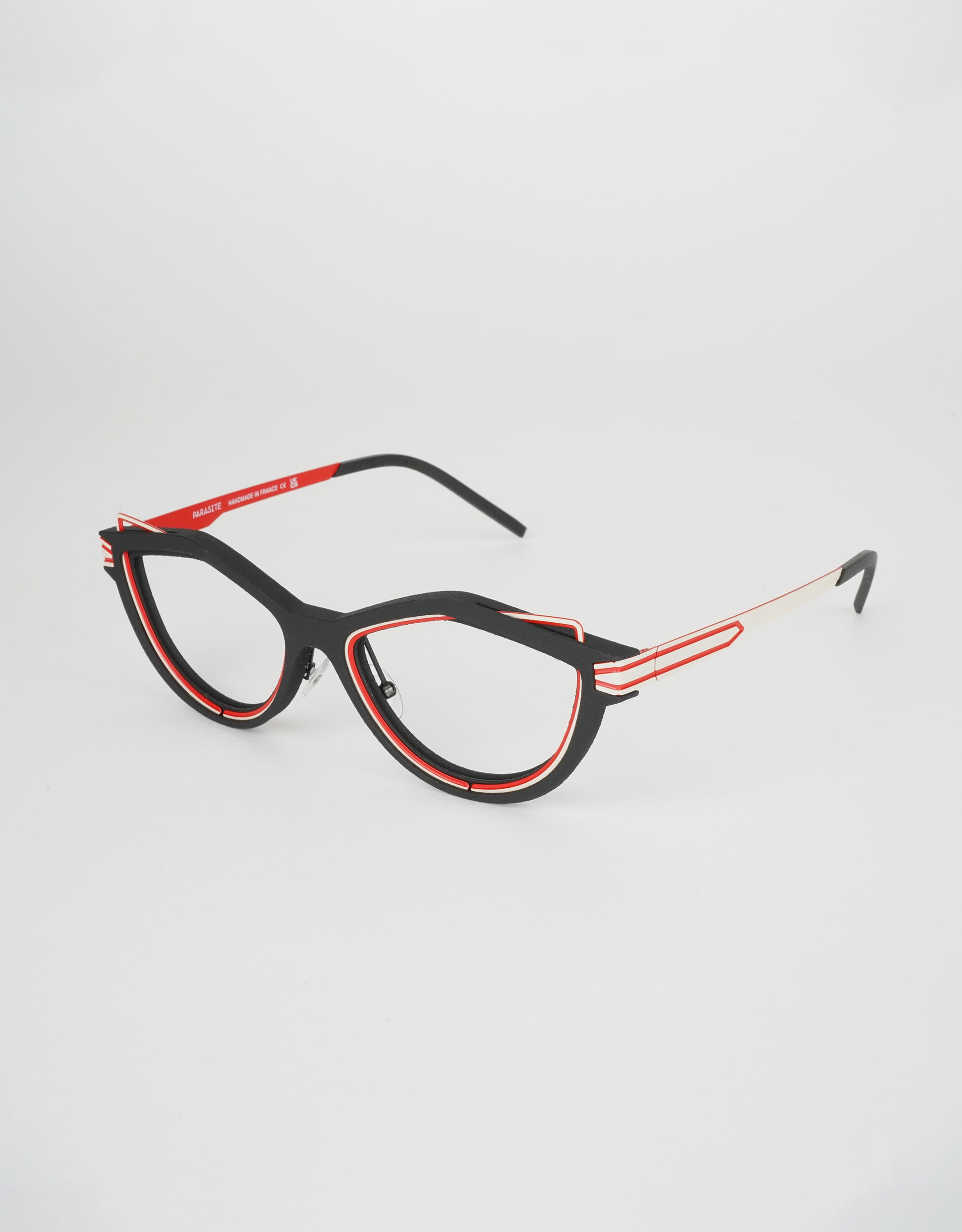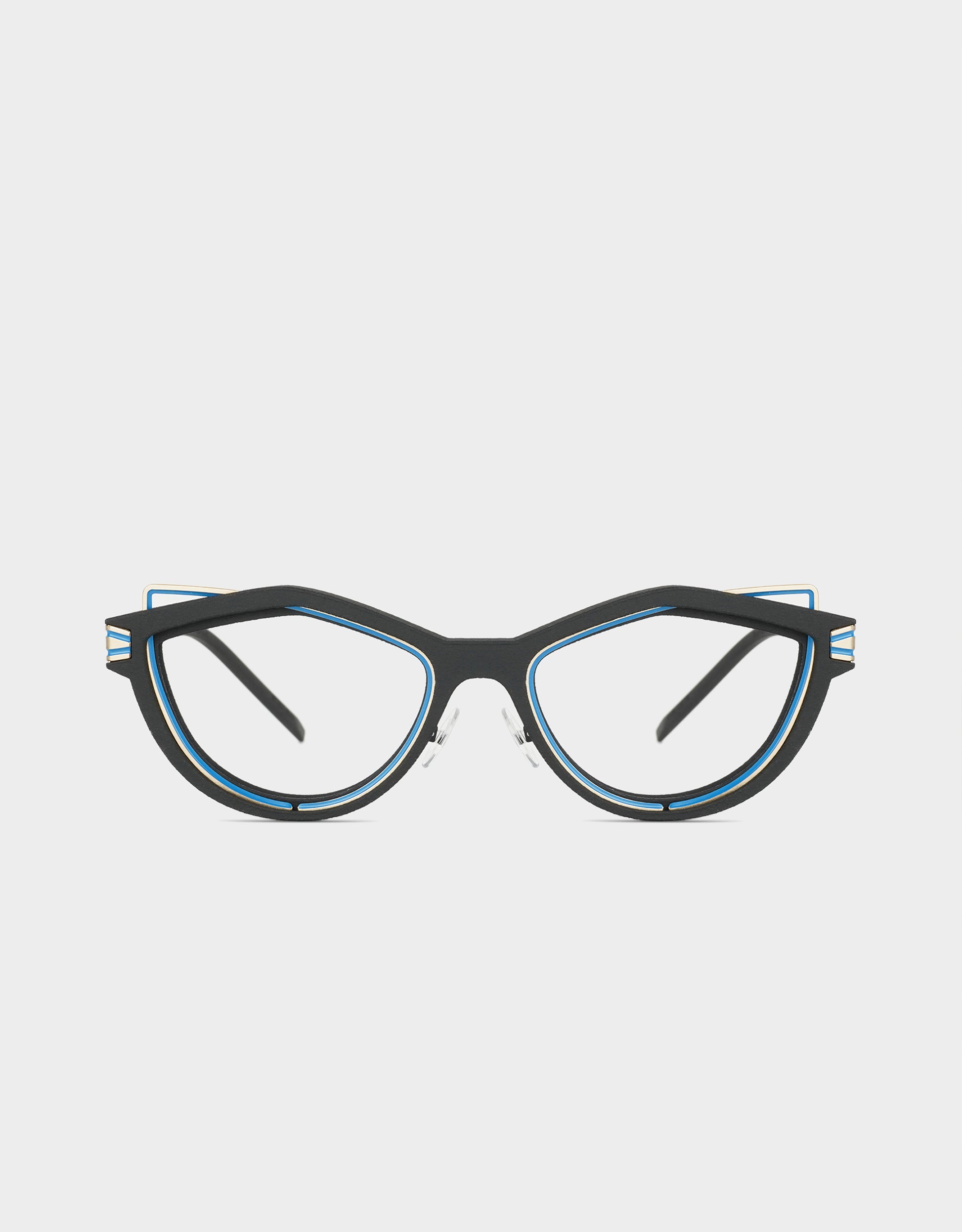 Particules eyewear frames draw their inspiration from an improved future. Showing assertive geometric curves, they echo the Motorsports practiced by daring people.