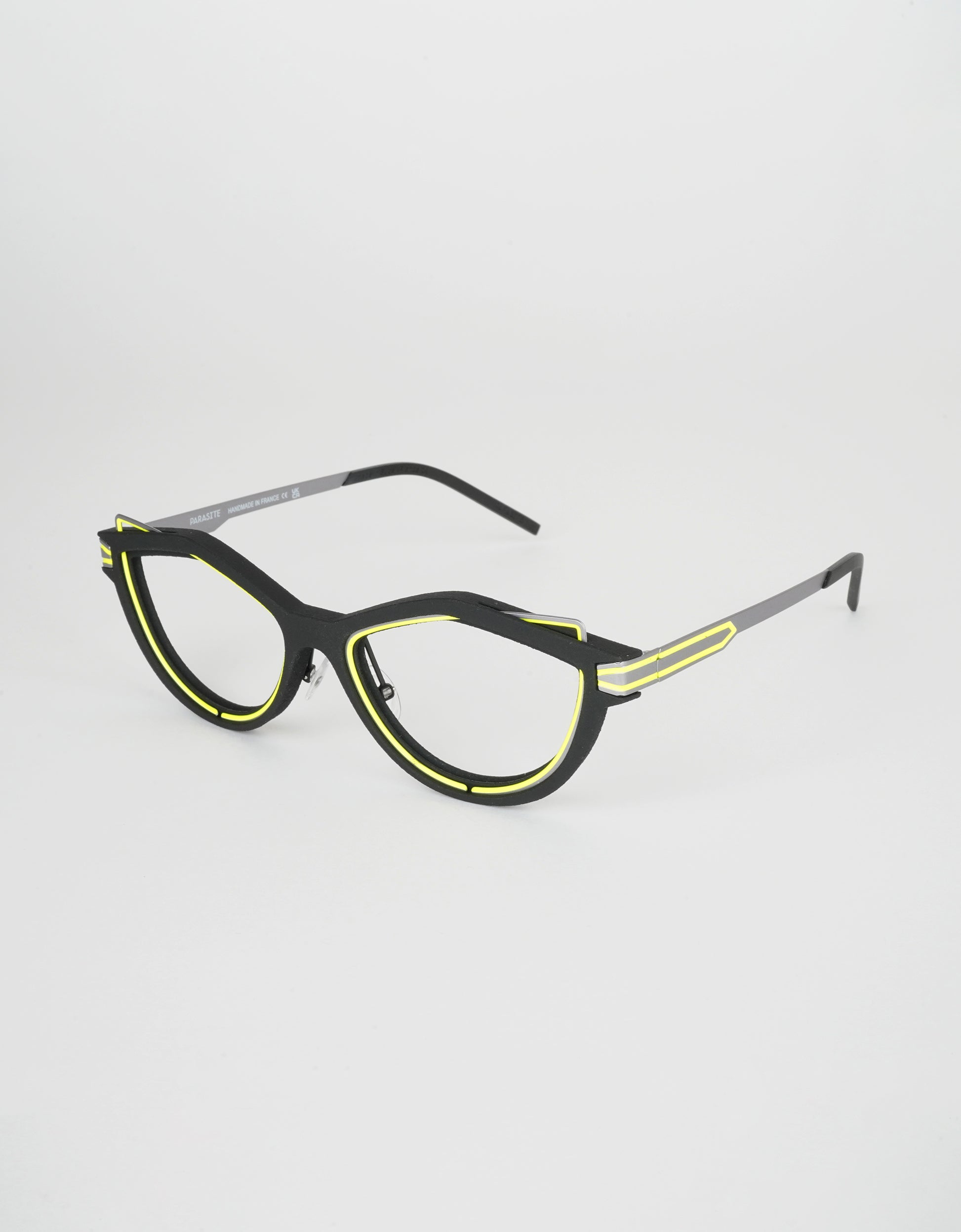 In addition, the glasses made in black 3D - printing are intended to be robust while the stainless steel structure is being neon coloured.